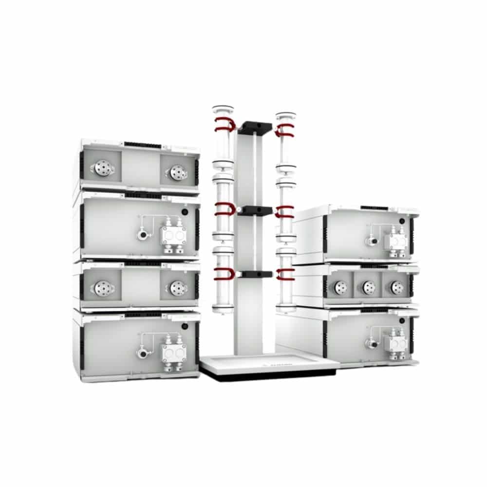 Due to this configuration, the SMB system is very flexible for many different separation methods. Additionally to the process stability AZURA® SMB systems are outperforming every other SMB system on the market regarding material and configuration flexibility as well usable pressure range.