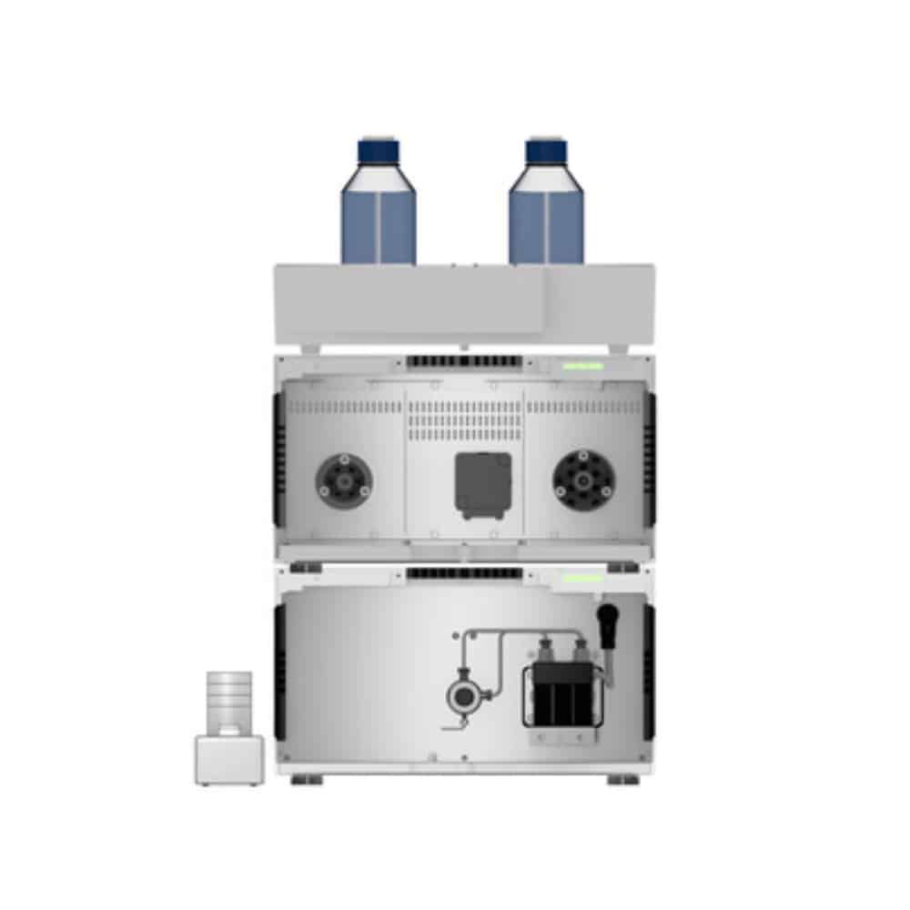 Due to its modular design, the system can be easily up scaled to higher flow rates by simply replacing the pump head, valves, flow cell and capillaries. The basic devices do not need to be replaced. The next scale-up level allows flow rates up to 200 ml/min at 200 bar. The 1/16″ capillaries are exchanged for 1/8″ capillaries. Higher sample volumes are injected via a channel of the gradient pump. The modules of the HPLC docking station and the valves are exchanged within minutes and allow to flexibly adapt the system to changing purification tasks.