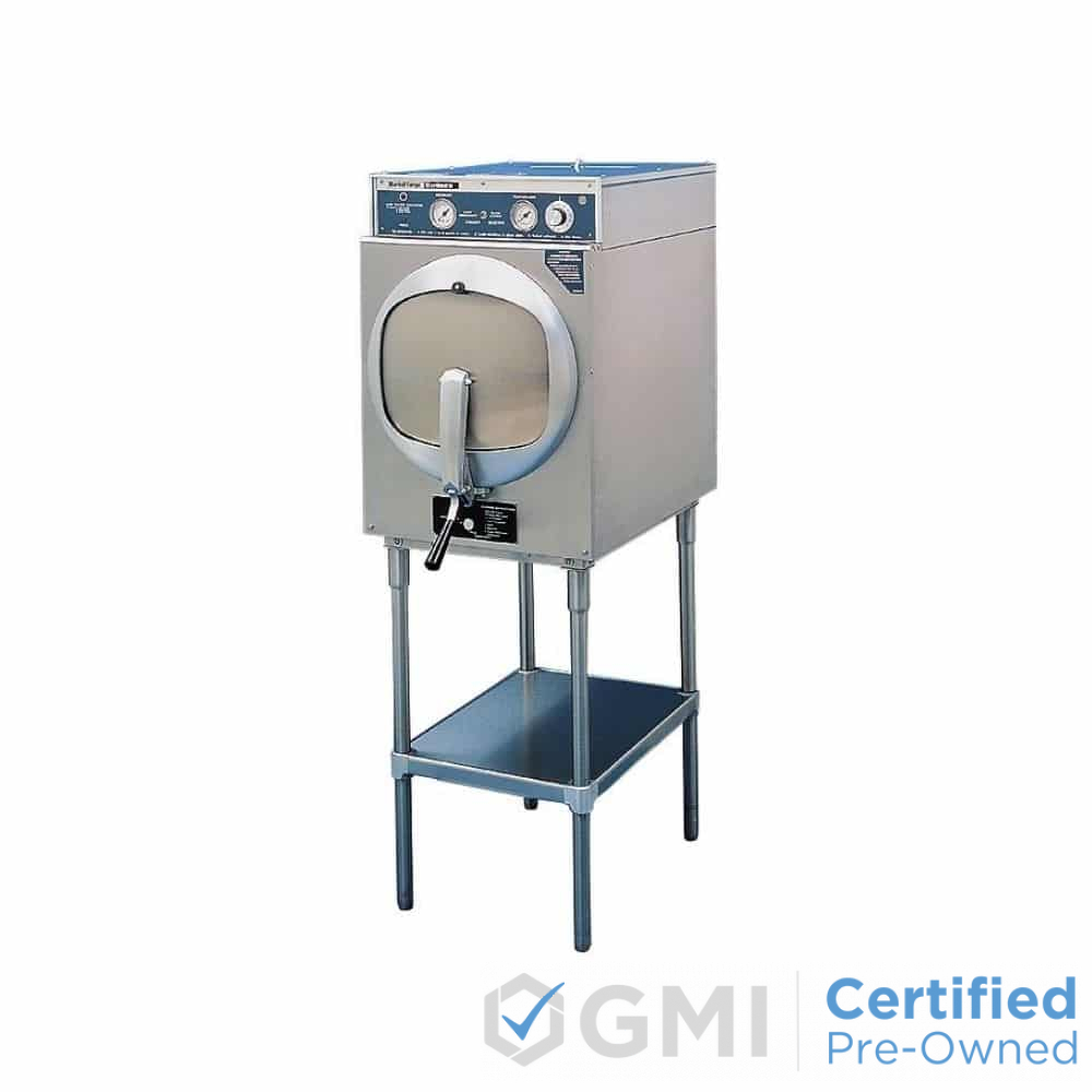 For easy and efficient handling of the Market Forge Sterilmatic STME and STME-L Autoclave, all controls are mounted on the front of the apparatus. The doors lock automatically and cannot be opened until pressure is released. Other Market Forge Sterilmatic system attributes include 0-30 lb steam gauge, low water cut-off, thermostatic steam trap, and flat perforated steam baffle.